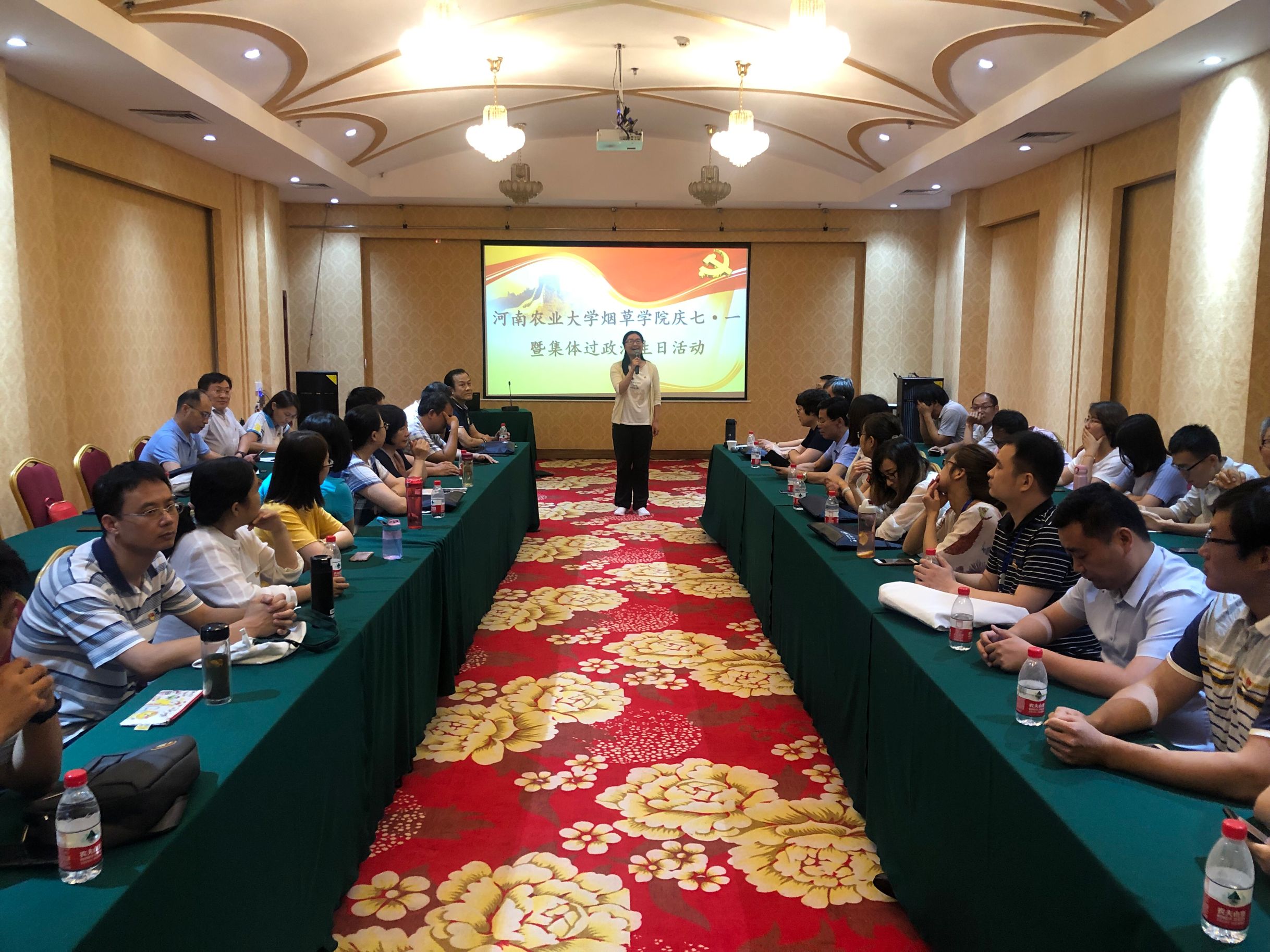 7月1日,我院在河南大学干部培训中心开展庆祝建党98周年“集体过政治生日”主题党日活动,全体教工党员参加。
