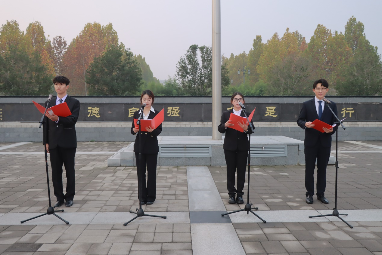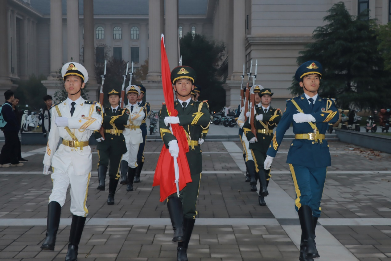 7时整,升旗仪式正式开始,伴随雄壮的国歌奏响,五星红旗冉冉升起,全体师生肃立,行注目礼。国家励志奖学金获得者杨杭发表“五秩风华启新程 青春建功与农行”主题演讲,他号召全体同学以青春之力续写辉煌,在勤学笃行中践行“强烟兴烟”的时代使命,让烟草教育的精神火炬薪火相传。院香韵艺术团成员带来朗诵《以青春之我,铸时代华章》,他们以铿锵有力的语言、饱满真挚的情感,展现了新时代青年立志报国、勇担使命的坚定信念和豪迈情怀。