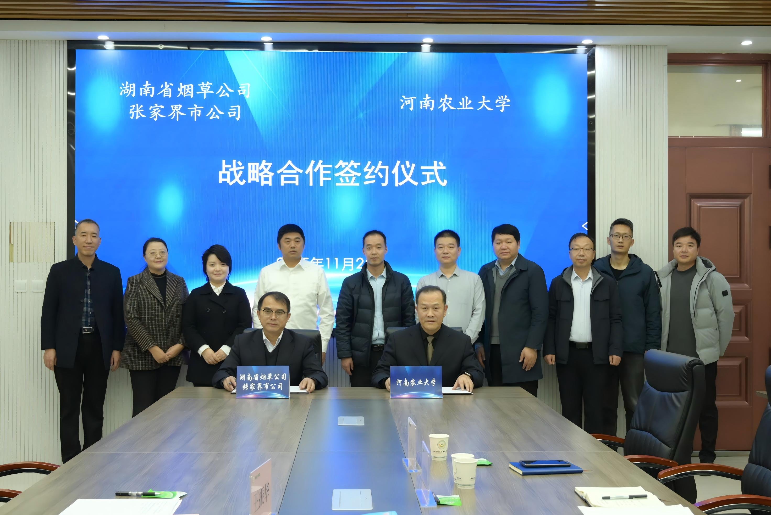 仪式进行前,参会人员共同观看河南农业大学烟草教育50周年宣传片。随后宋朝鹏对唐恢栋一行表示热烈欢迎,并感谢张家界市烟草公司的长期支持和深度合作。宋朝鹏在讲话中指出,学院始终以服务国家战略与行业需求为己任,构建起产学研用深度融合的协同体系,为行业输送了大批杰出专业人才,成功走出一条特色鲜明的高质量发展之路。张家界市局凭借其在技术突破、科研成果转化等领域取得的扎实成果,填补了湖南高端雪茄原料空白,为中式雪茄自主化注入了崭新元素。本次战略合作协议的签署,标志着校企双方合作进入“全方位联动,深层次耕耘,高效益共享”的新阶段。双方将以此为起点,共同为张家界烟草探索新质生产力、聚力打造国内雪茄烟叶产业的创新引擎。